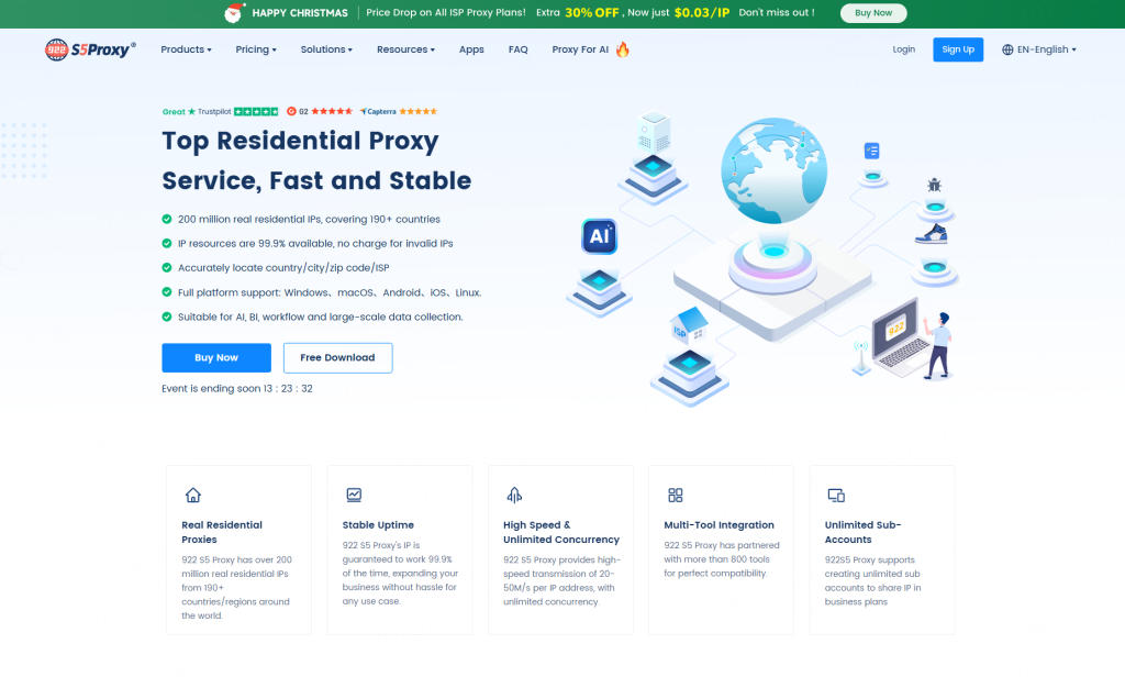 922 S5 Proxy offers a massive pool of over 200 million residential IPs. These are real IPs from legitimate ISPs, making your connection indistinguishable from a regular user. The “Anonymous Proxy Detected” system effectively sees you as a standard visitor.
