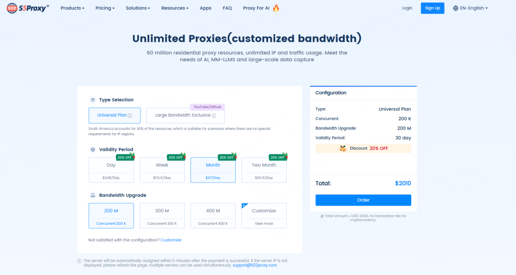 922 S5 Proxy offers several pricing options to accommodate various marketing needs. Whether you’re running a small localized campaign or a large-scale operation, 922 S5 Proxy has a plan that fits your budget.